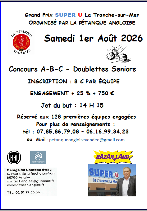 Le samedi 01 août 2026 de 14h15 à 22h30 Lieu : 85 ANGLES