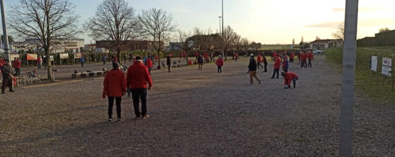 Notre concours de Noël a permis à 60 joueurs de se rencontrer en triplette à la mêlée sous l'ombriere en raison du temps très incertain. Une tombola était également organisée avec une super bourriche offerte par notre sponsor super-U et de nombreux autres lots.